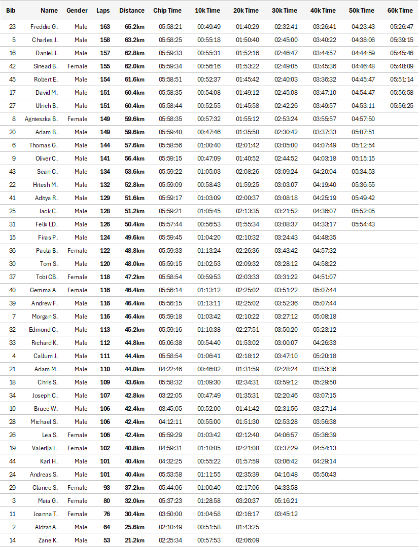 SPIRAL RACE RESULTS